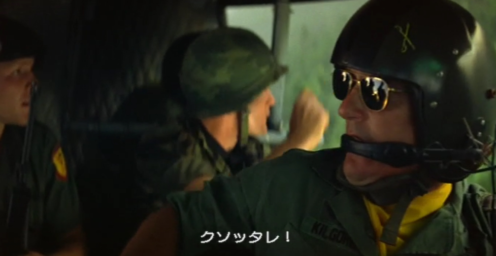 地獄の黙示録より (映画の字幕は「クソッタレ」となっていますが、実際の台詞は「Fuckin’ savages」(クソ野蛮人ども)です)