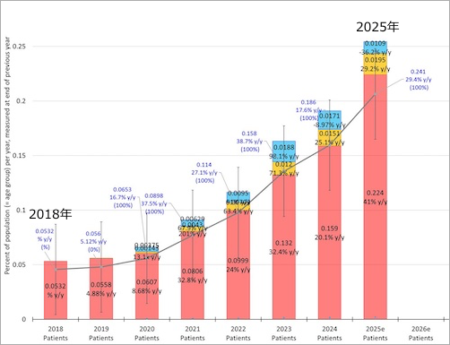 (2018年〜2025年 / 2025年は予測値)