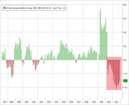 アメリカの実質賃金の推移 (2007-2022年)