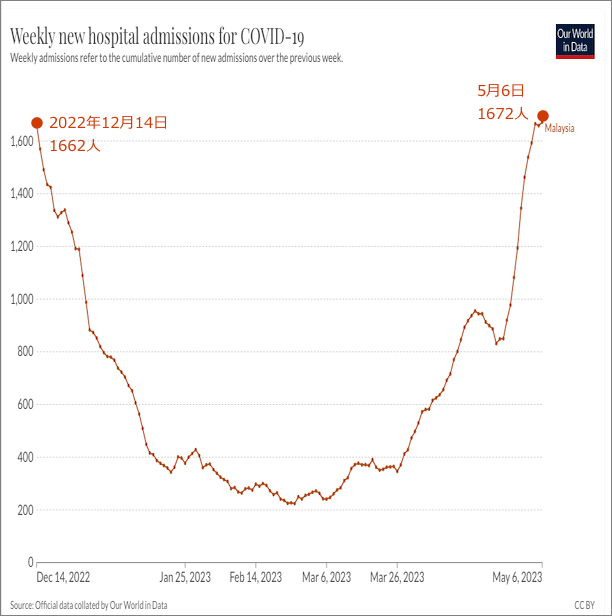マレーシアの新たなコロナ入院患者数の推移