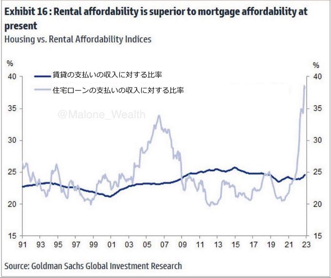 米国の賃貸と住宅ローンの収入に対する価格指数