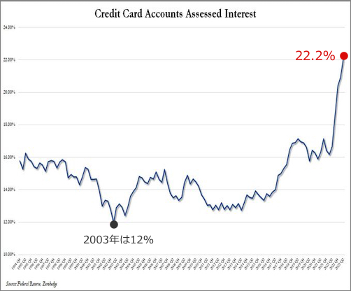ブレインデッドニュース, 経済崩壊 アメリカのクレジットカードの平均金利が過去最高の22.2%を更新 2023年7月11日 nofia 1994年-2023年の米国のクレジットカード利息の推移 Average credit card interest rate hits new record high 22.2%