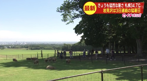 一方、豊平区の羊ヶ丘展望台では・・・ヒツジが暑さでうなだれていました。