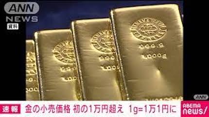 【速報】金価格(円建て)が1グラム1万1円 初の1万円超え 円安が要因