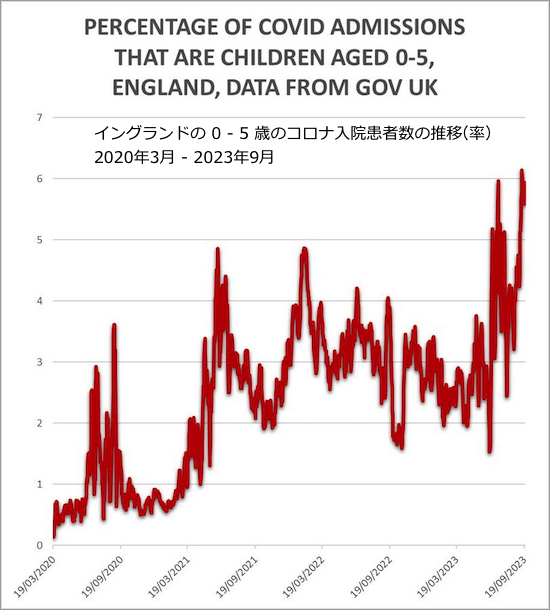 英国のコロナ入院患者における0-5歳の占める率の推移