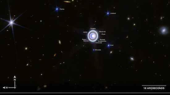 さらに、ウェッブ宇宙望遠鏡は天王星に既知の 27個の衛星を発見することができた。