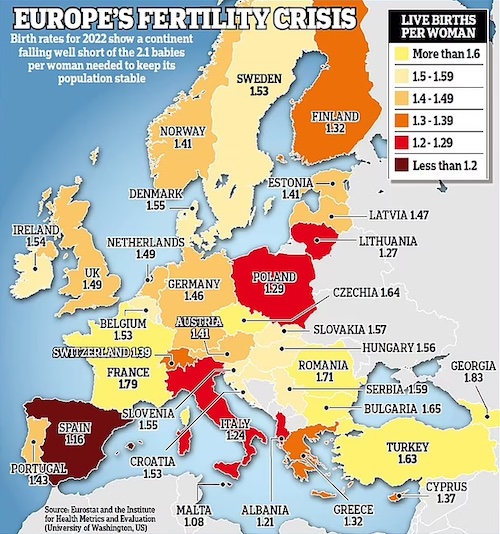 ニュース ヨーロッパには出生率が「2.0」に達している国がひとつもない 2024年11月17日 nofia ちなみに、日本の出生率は 1.23 (2023年)ですが、スペインは日本より低い 1.16 ですね。 ヨーロッパ各国の出生率 dailymail.co.uk