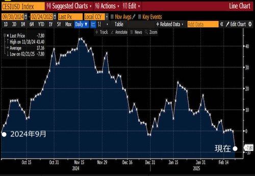 2024年9月〜現在までのエコノミックサプライズ指数の推移