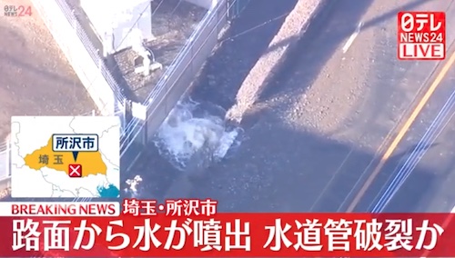 【速報】埼玉・所沢市の道路から水が噴き出す 警察や消防などが対応中 近隣住民「5メートルほどの高さに」