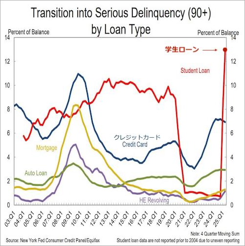 アメリカの学生ローンの延滞率が過去最大に