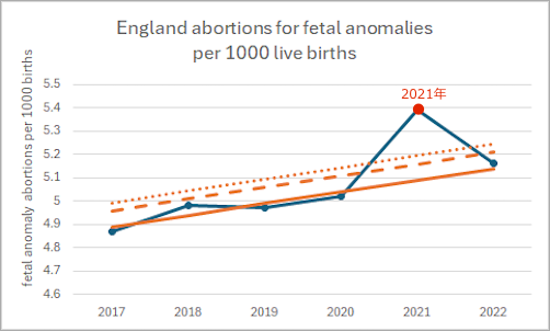 ワクチンニュース 英国の胎児異常による中絶件数の推移 2025年8月29日 nofia イングランドの2017年-2022年の胎児異常による中絶件数の推移 (出生数1000人あたり) ClareCraigPath