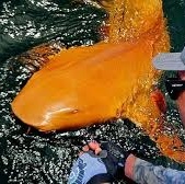 フェイスブックで公開された写真を見ると、サメの体長はおよそ 2メートルで、成体だとみられる。一般的にこの種のサメは灰色だが、今回目撃されたサメは全身が強烈なオレンジ色に光っている。目も幽霊のように蒼白で、瞳が見当たらない。
