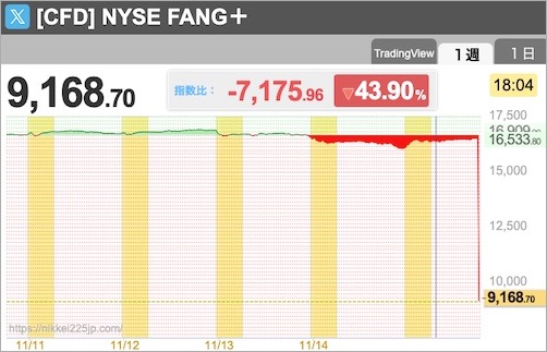 それが現在(2025年11月17日午後6時)以下のように 43%の下落というように表示されています。