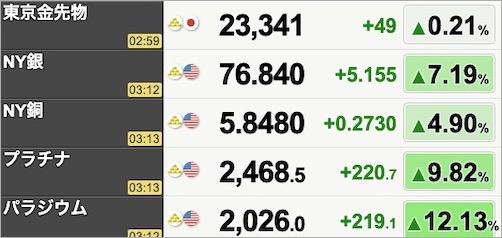 銀も精密機械に利用されており、米国が関税をかけるとの懸念から駆け込み的に買われているようだ。