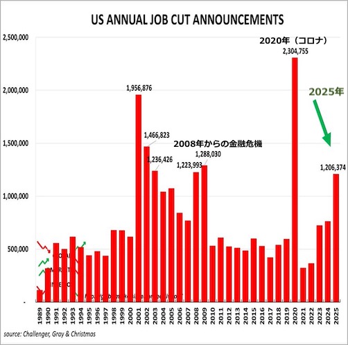 2020年のパンデミックは別としても、2001年の ITバブル崩壊も壮絶な状況だったのですね。今年 2026年はさらに解雇が進むことが確定的ですので、金融危機時を超えそうです。