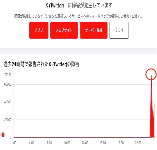 2026年1月17日午前1時(日本時間)のXの障害報告