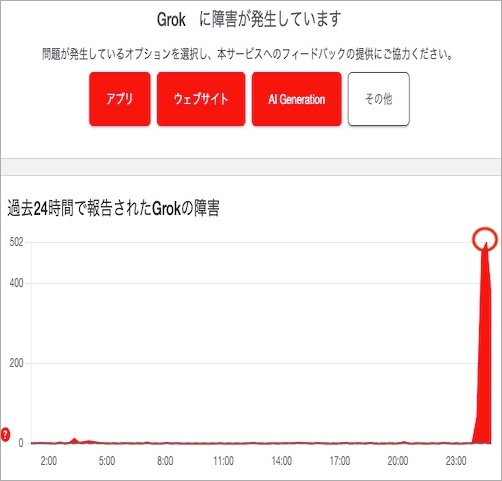 2026年1月17日午前1時(日本の時間)のGrokの障害報告