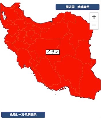 ●こうした状況を受け、首都テヘランを含む、これまで危険情報がレベル3(渡航中止勧告)であった地域の危険レベルを4(退避勧告)に引き上げます。これにより、イラン全土の危険情報がレベル4(退避勧告)となります。