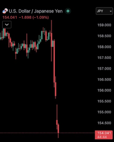 関係筋はロイター通信に対し、ニューヨーク連銀がディーラーらとドル/円のレートを確認したと語った。これは介入の前兆とみられ、円の売り持ちを解消しようとする動きで、円は金曜日の安値から約 3%下落した。