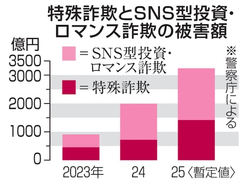 詐欺被害額、最悪の3千億円超 25年、特殊・SNS型