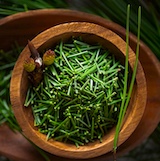 ・新鮮な松葉を細かく刻んで大さじ 1杯取り、水 250ミリリットルを加える。