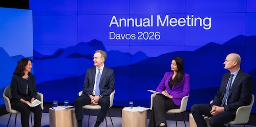 2026年1月、ダボスで開催されたWEF記者会見に出席したボーレ・ブレンデ氏(左から2番目)。