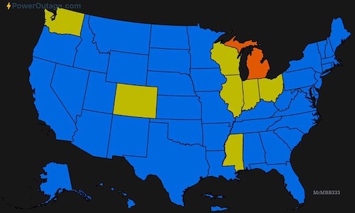 最大の停電クラスターは五大湖地域で発生している模様です。