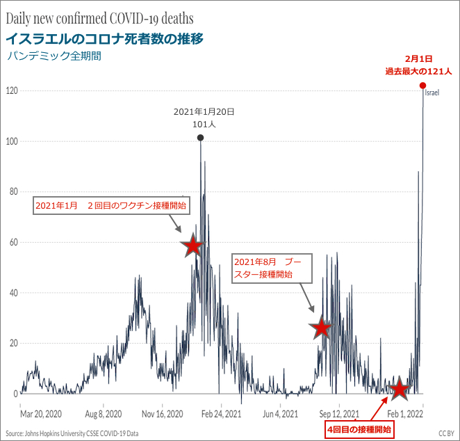 参考記事「イスラエルの1日の新たなコロナ死者数がパンデミック開始以来最大を記録」 (地球の記録 2022/02/03)