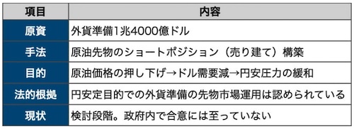 そこで原油先物市場に直接介入し、価格を抑えることで間接的に円を支えるという発想が浮上した。