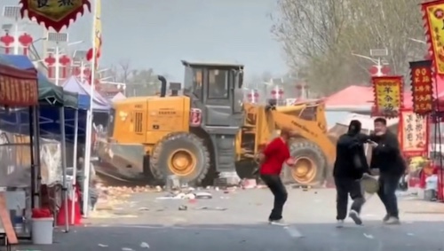 インターネット上で拡散されている動画には、3月29日正午、北京市房山区の大漢集市場が買い物客で賑わっていたところ、突然男がブルドーザーで市場に突っ込み、複数の露店や人々をなぎ倒し、市場中に悲鳴が響き渡る様子が映っている。