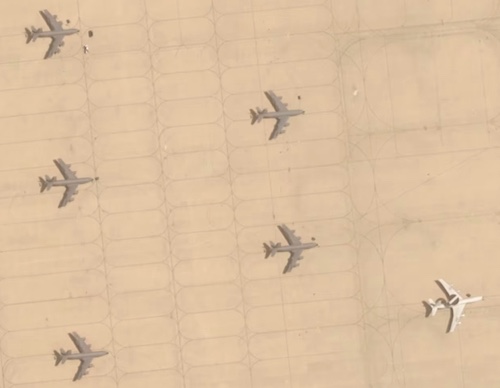 他にも空中給油機や「E2ホークアイ」早期警戒機など、複数の航空機が野ざらしの状態にあるのが確認できる。