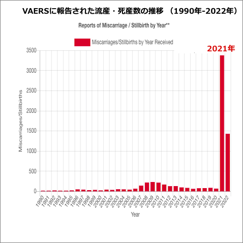CDCワクチン有害事象システムに報告された過去32年間のアメリカの「死産・流産」数の推移